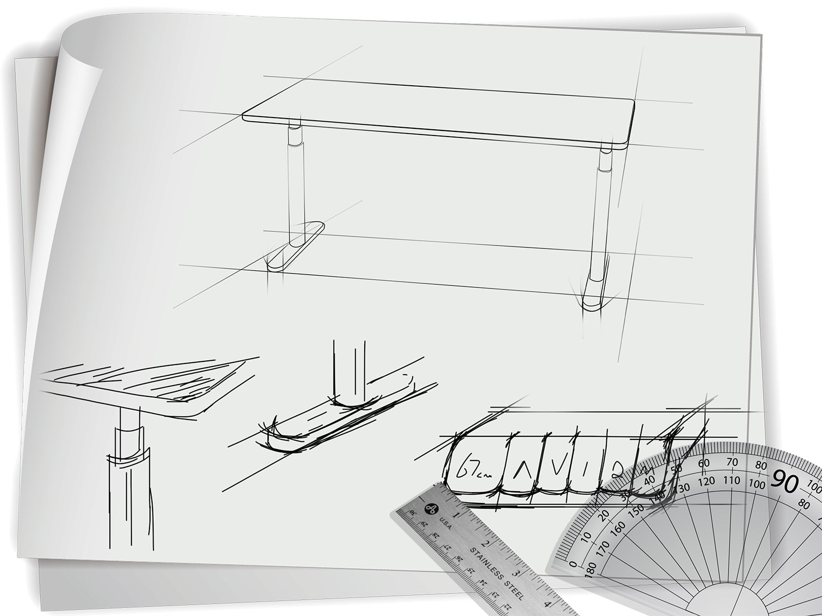 Bureau réglable en hauteur avec 4 pieds pour une stabilité